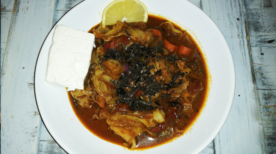 Wild mushrooms add a special flavor to any dish they enter. We tried a not so common combination and the result was very successful, since the winterish taste of the cabbage perfectly matches the winey taste of the dried volites.