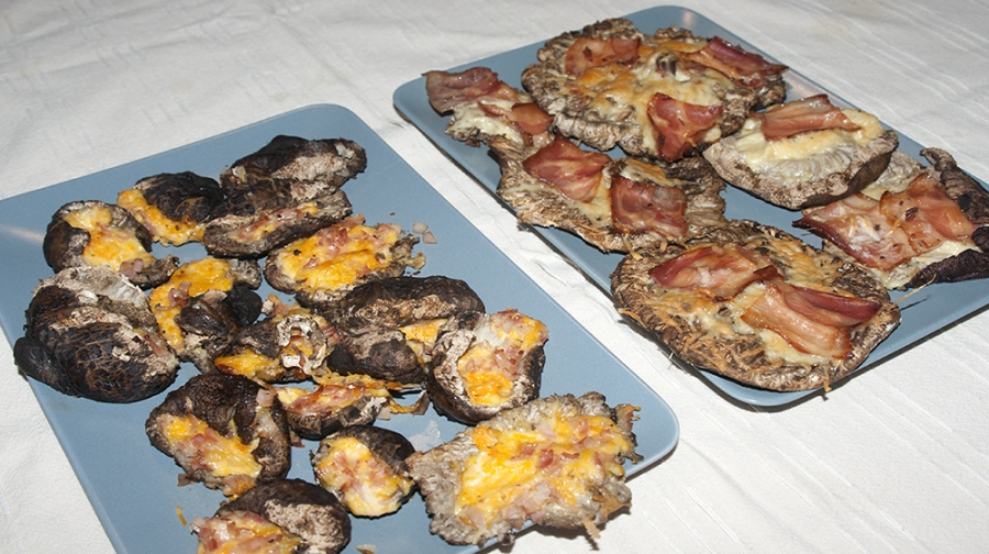 Φρέσκα άγρια μανιτάρια Μακρολεπιότες στο φούρνο, γεμιστές με τυριά και μπέϊκον Φρέσκα άγρια μανιτάρια Μακρολεπιότες στο φούρνο, γεμιστές με τυριά και μπέϊκον Φωτό: Mushroot8